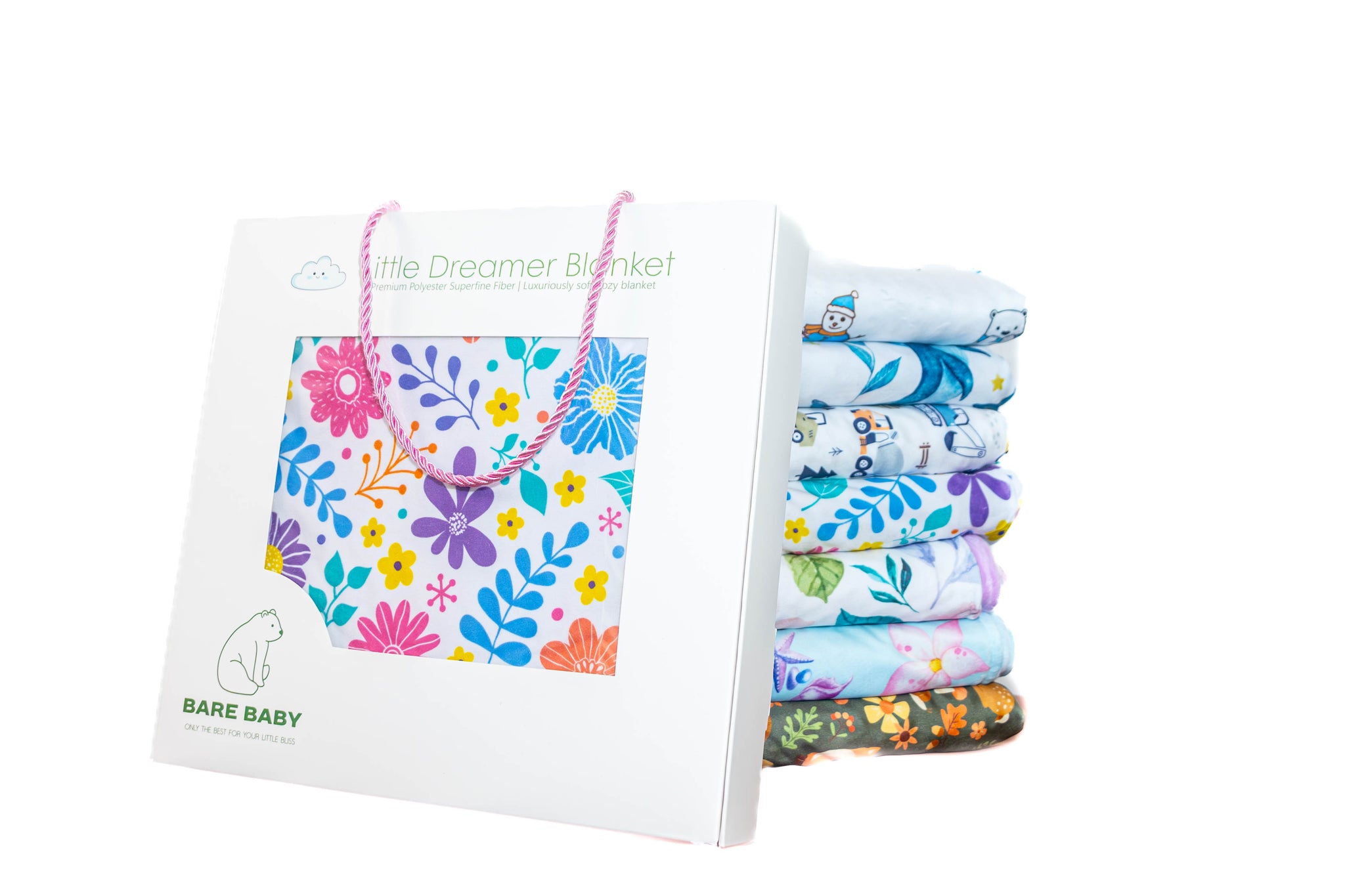 Wrap your little one in the cozy comfort of Bare Baby’s luxuriously soft premium blanket, made from high-quality polyester superfine fiber. Designed with our signature prints, it’s the perfect addition to your nursery or toddler’s room.