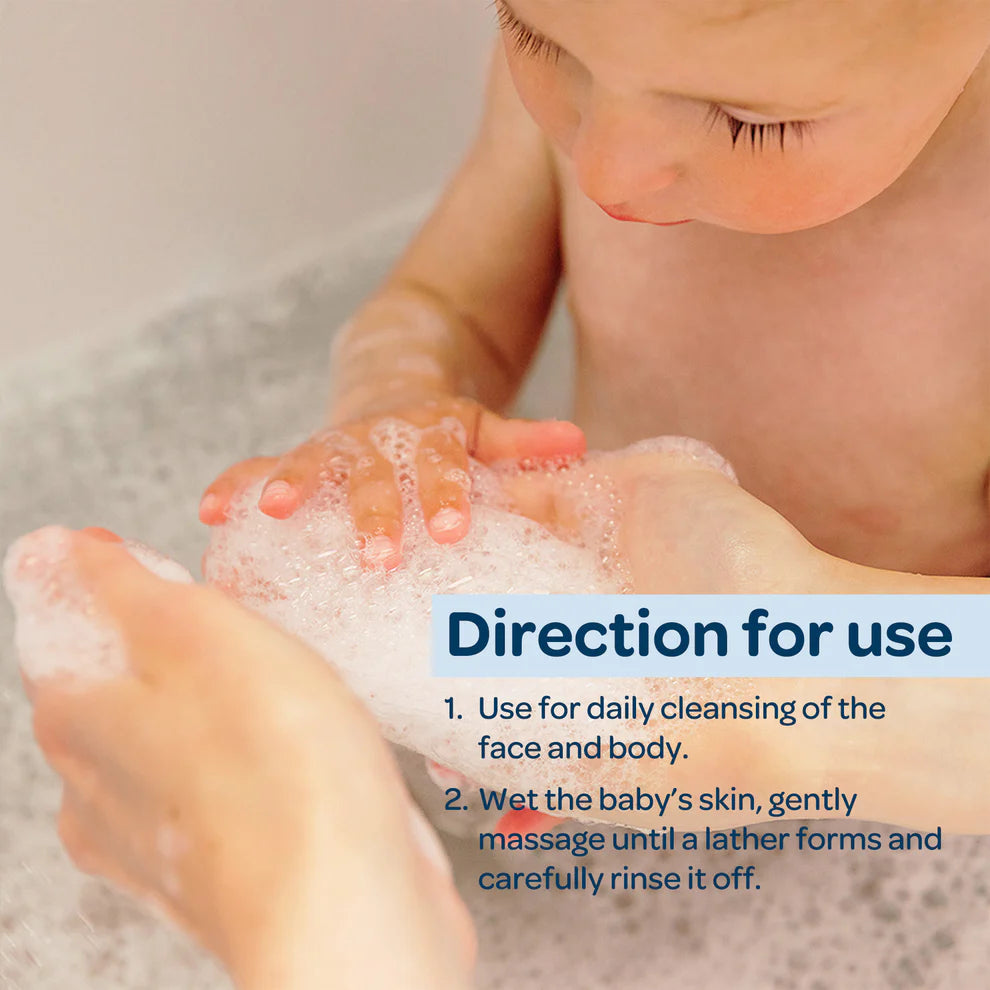 Its formula, containing sweet almond oil and softening agents, helps reinforce the hydrolipidic film to protect the epidermis. Its creamy texture and its gentle foam gently cleanse baby’s skin.