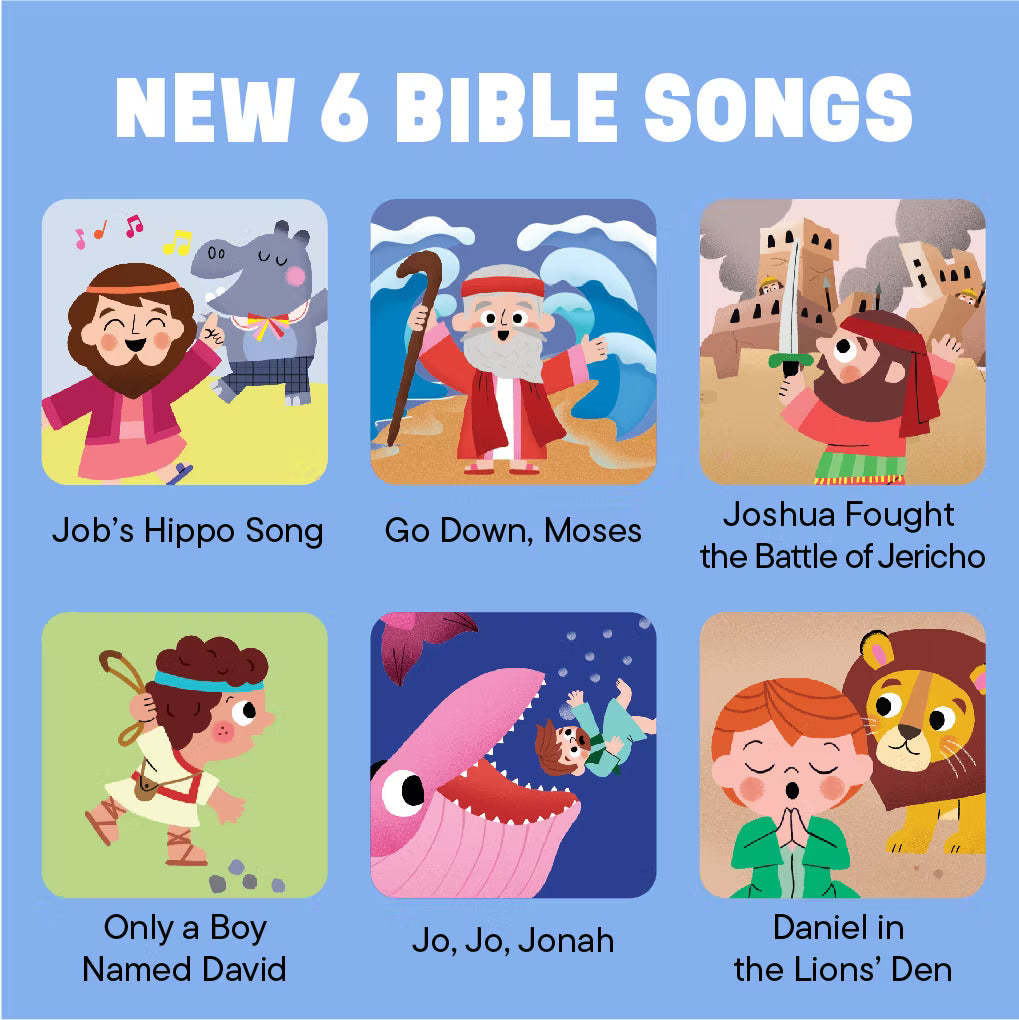 • 6 BIBLE SONGS FOR KIDS TO SING ALONG: Includes "Job's Hippon Song", "Go Down, Moses", "Joshua Fought the Battle of Jericho", "Only a Boy Named David, "Jo, Jo, Jonah", and "Daniel in Lion's Den". Professionally recorded vocals and a QR code for full streaming offer an extended music experience beyond the book.