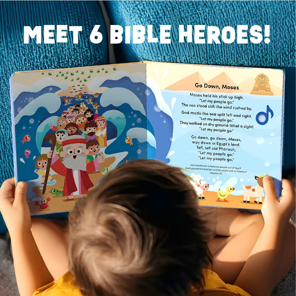 • MEET 6 BIBLE HEROES THROUGH SONGS: Each character's story comes to life with fun, catchy music - making it easy for kids to remember how God helped and protedted His people. This book encourages families to explore Bible stories together.