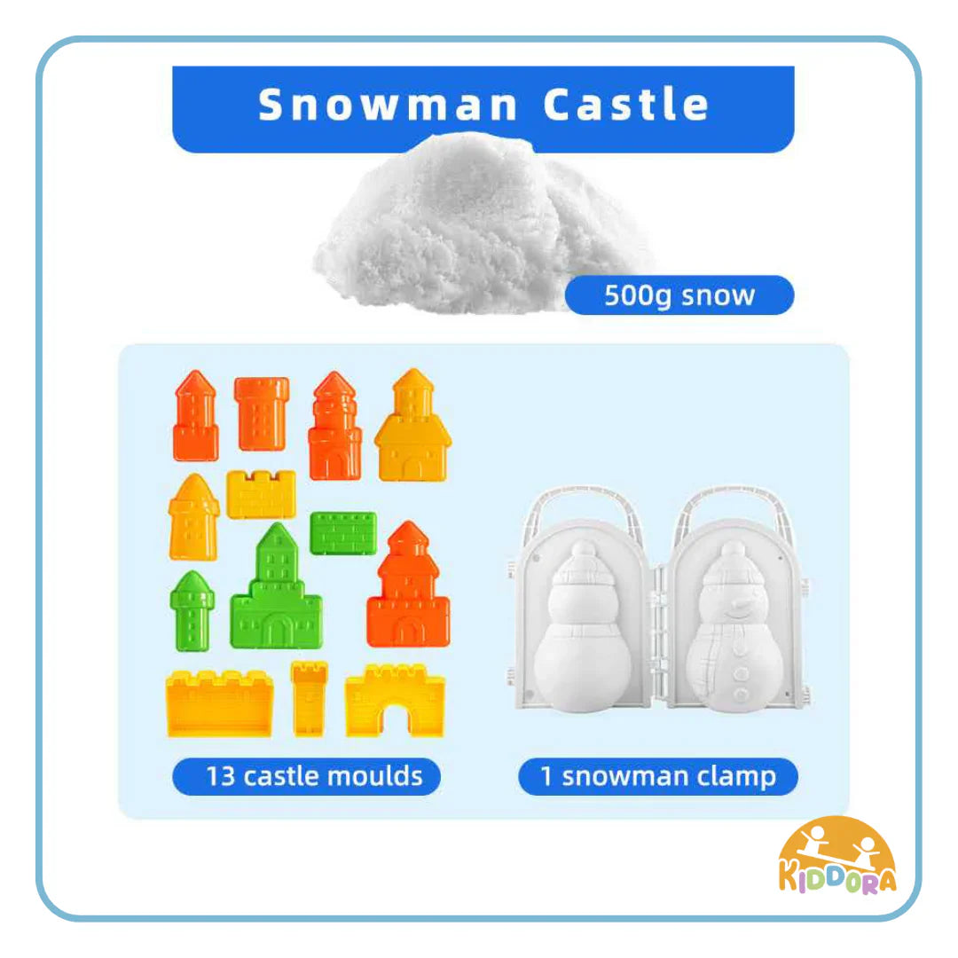Bring winter wonderland fun indoors with Kiddora’s SnowFairy Snowman Castle! Cool to the touch and soft like real snow, it’s perfect for sculpting, shaping, and sensory play—all without the mess.