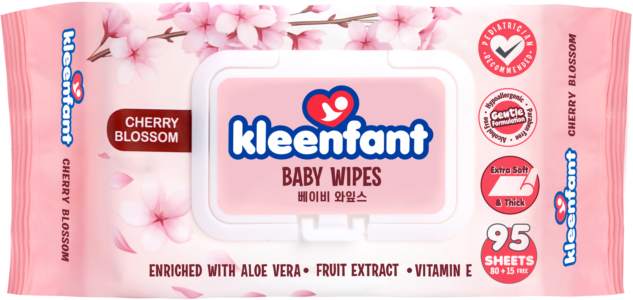 Kleenfant Cherry Blossom Baby Wipes (95 Sheets)