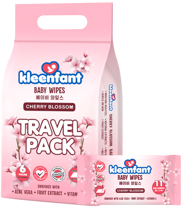 Kleenfant Cherry Blossom Baby Wipes Travel Pack (Pack of 6)