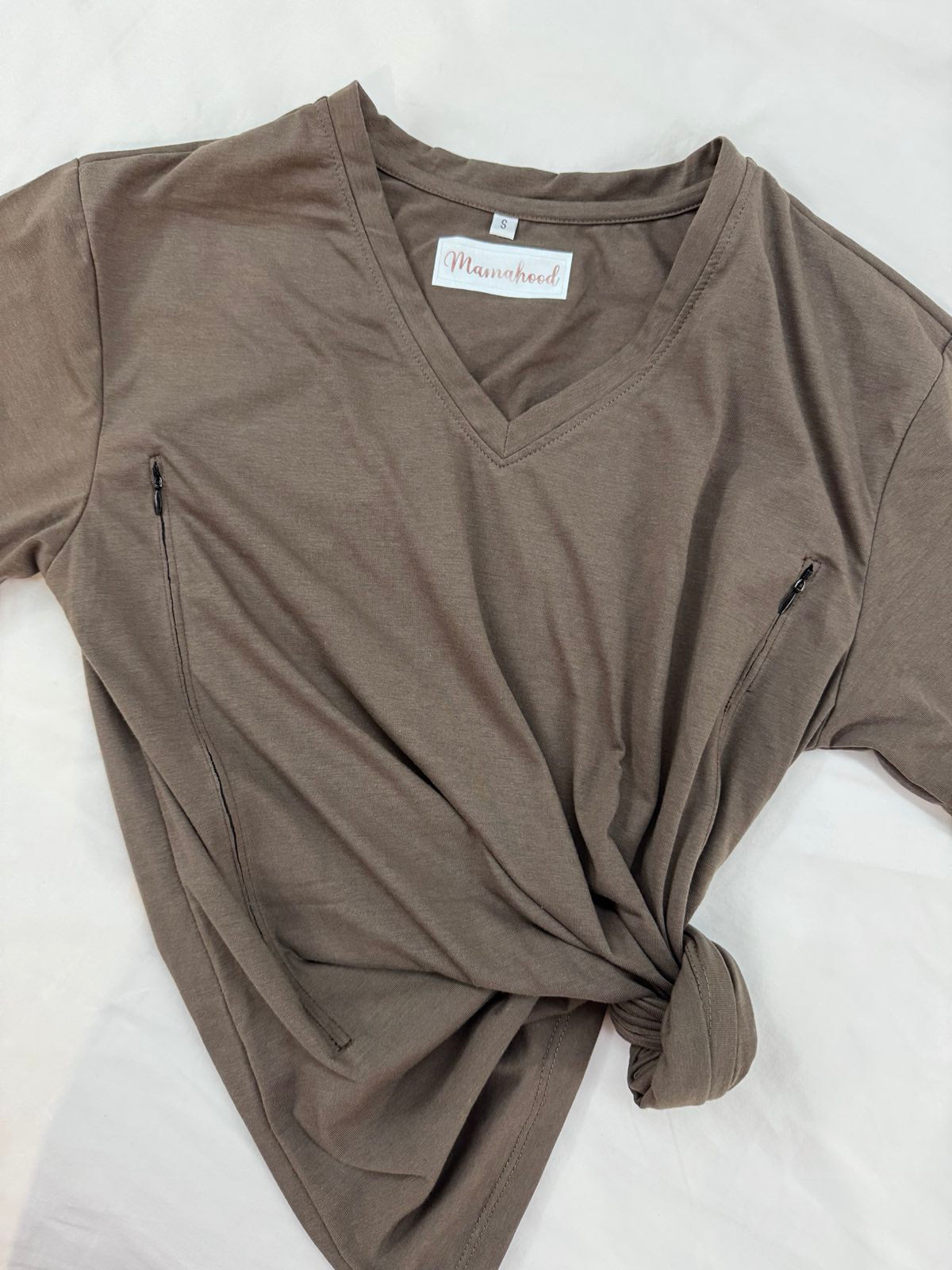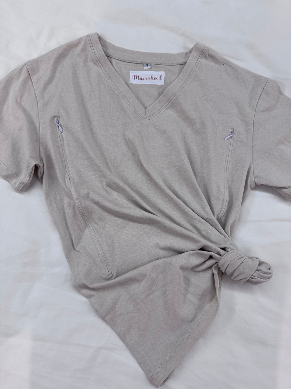 Each Mamahood tee is designed with 12” long hidden zippers so you can easily pull it down when you need to nurse or express milk. It looks like your ordinary tee that you can even wear after you finish breastfeeding