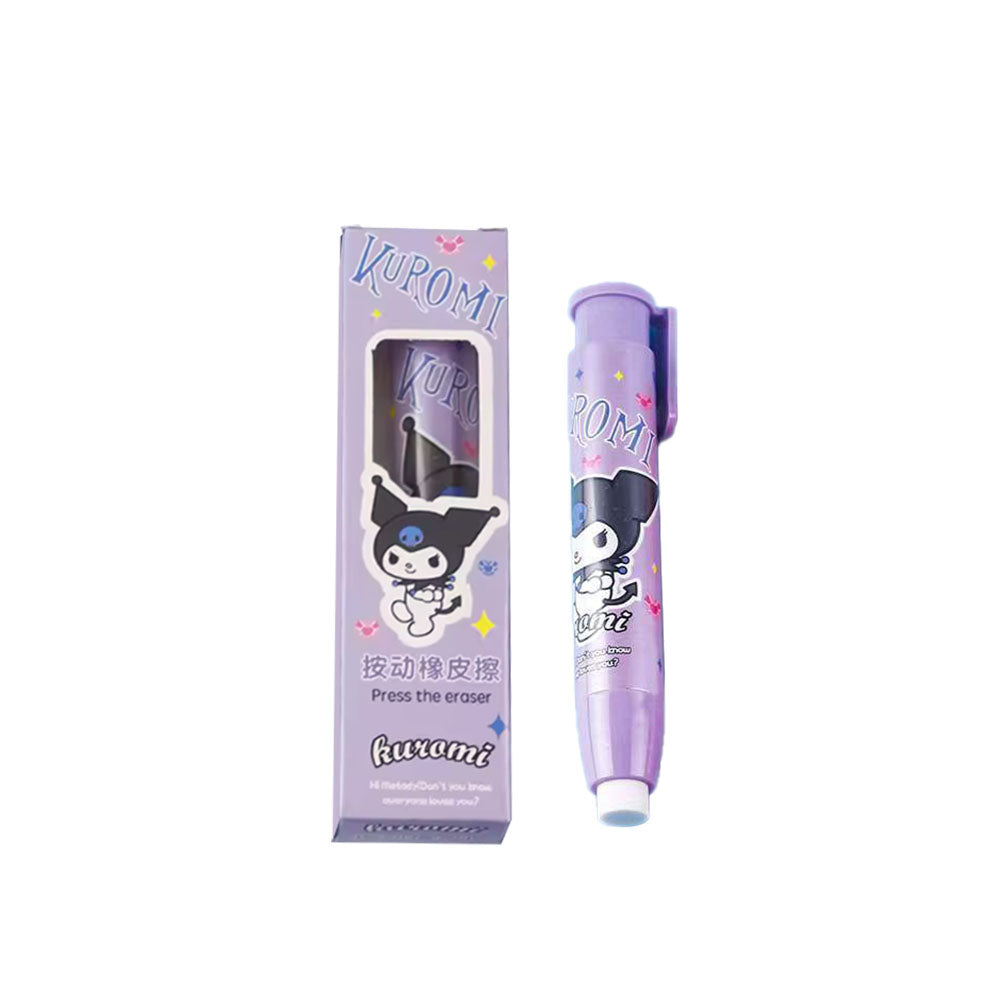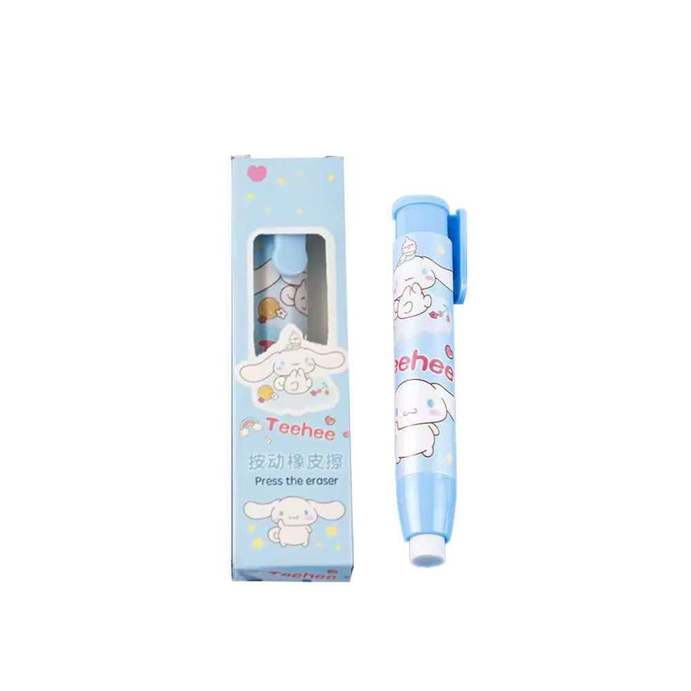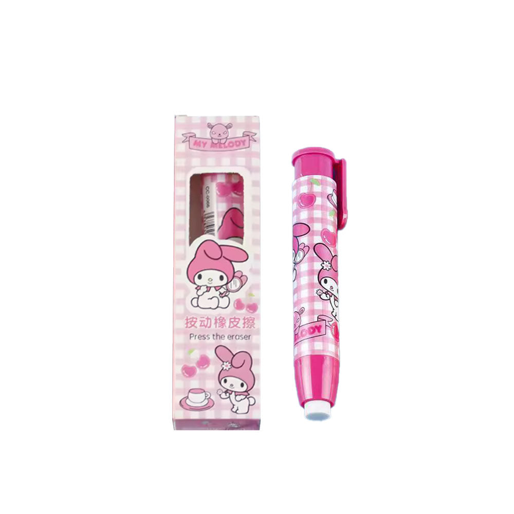 Erase mistakes in the cutest way with this Sanrio Press Eraser Pen! Designed like a pen, just press and erase—no mess, no broken erasers.