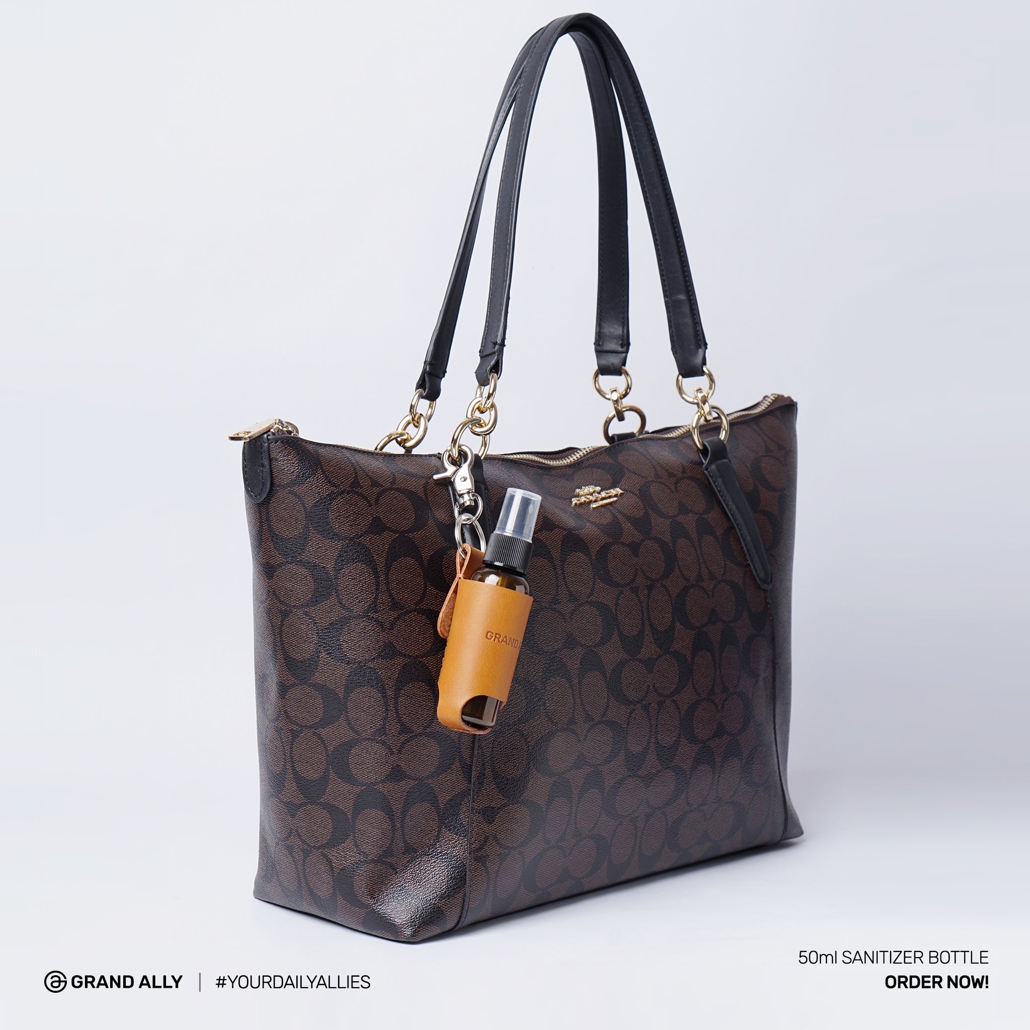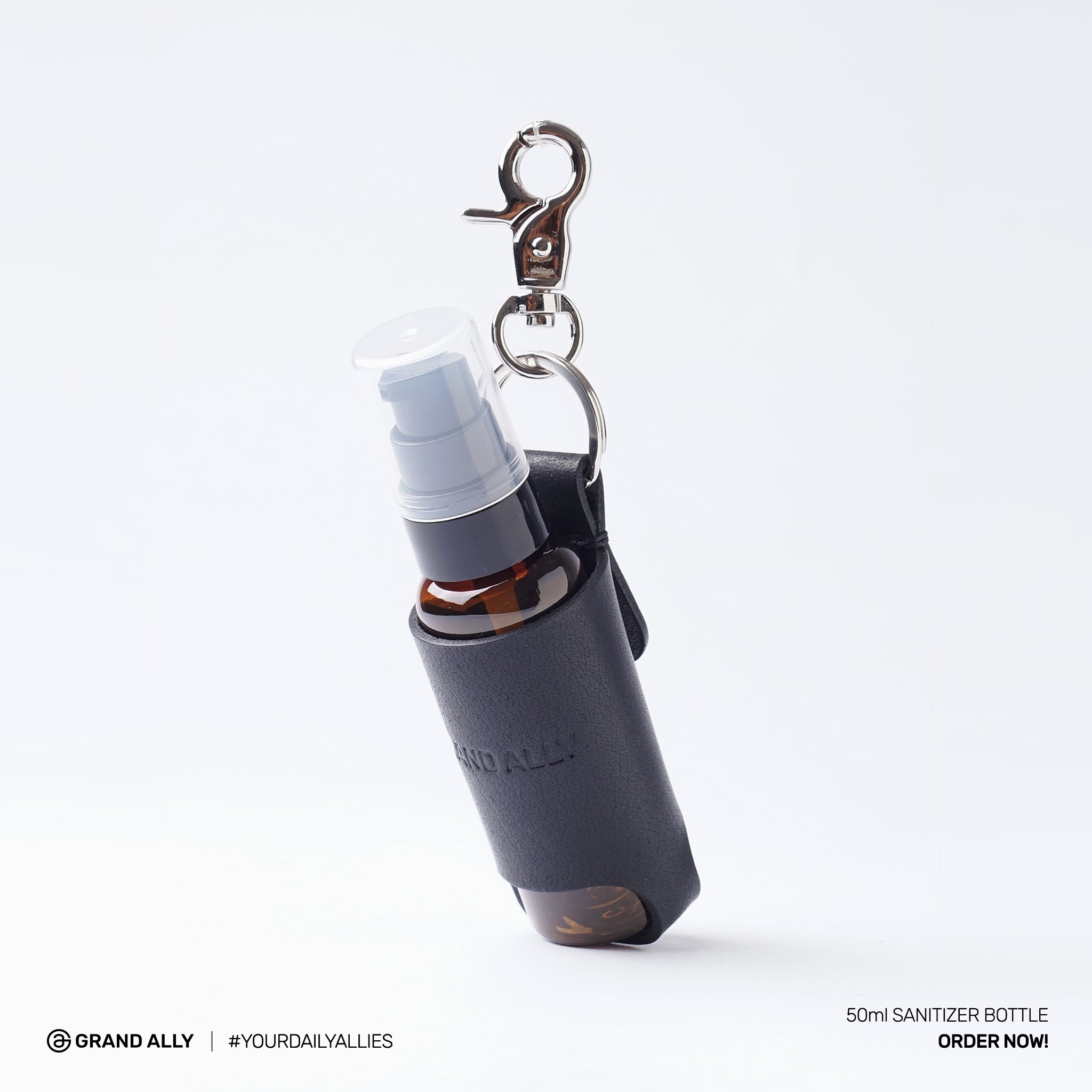 The 50ml sanitizer bottle comes with a hand-stitched leather casing made from a full-grain vegetable tanned leather. It also features a durable lobster clasp and key ring hardware that you can easily fasten to your belt loop or to your favorite bags.
