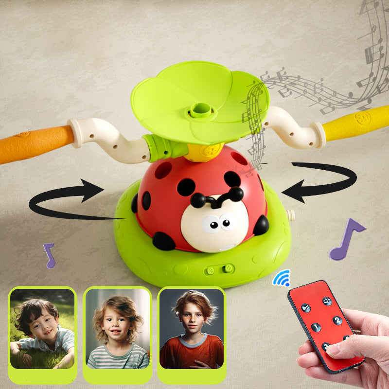 A fun and active game for kids! This adorable Ladybug Jump & Spin Game challenges children to jump, duck, and dodge the rotating arms. It features music, lights, and adjustable spinning speed via remote control. Perfect for both indoor and outdoor use. Comes with extra play options like target ring toss and pop-up rocket shooting—hours of energetic fun guaranteed!