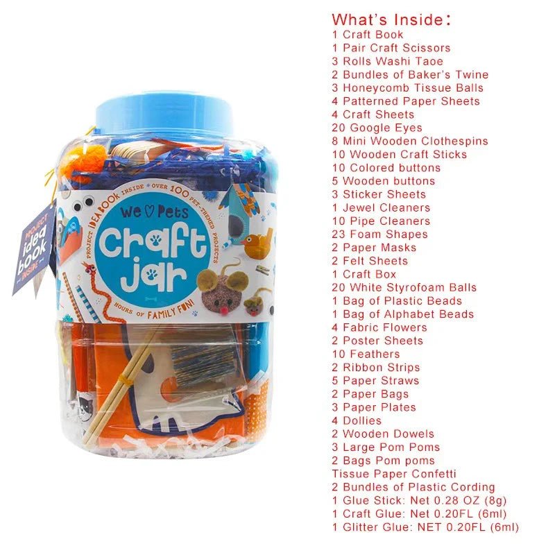 Spark creativity and hands-on fun with the We ♥ Pets Craft Jar, a jam-packed arts and crafts set designed to keep little hands busy and imaginations soaring. Housed in a reusable, easy-to-store jar, this all-in-one craft kit includes over 100 craft materials to create countless pet-themed projects—perfect for kids, families, classrooms, and playdates.