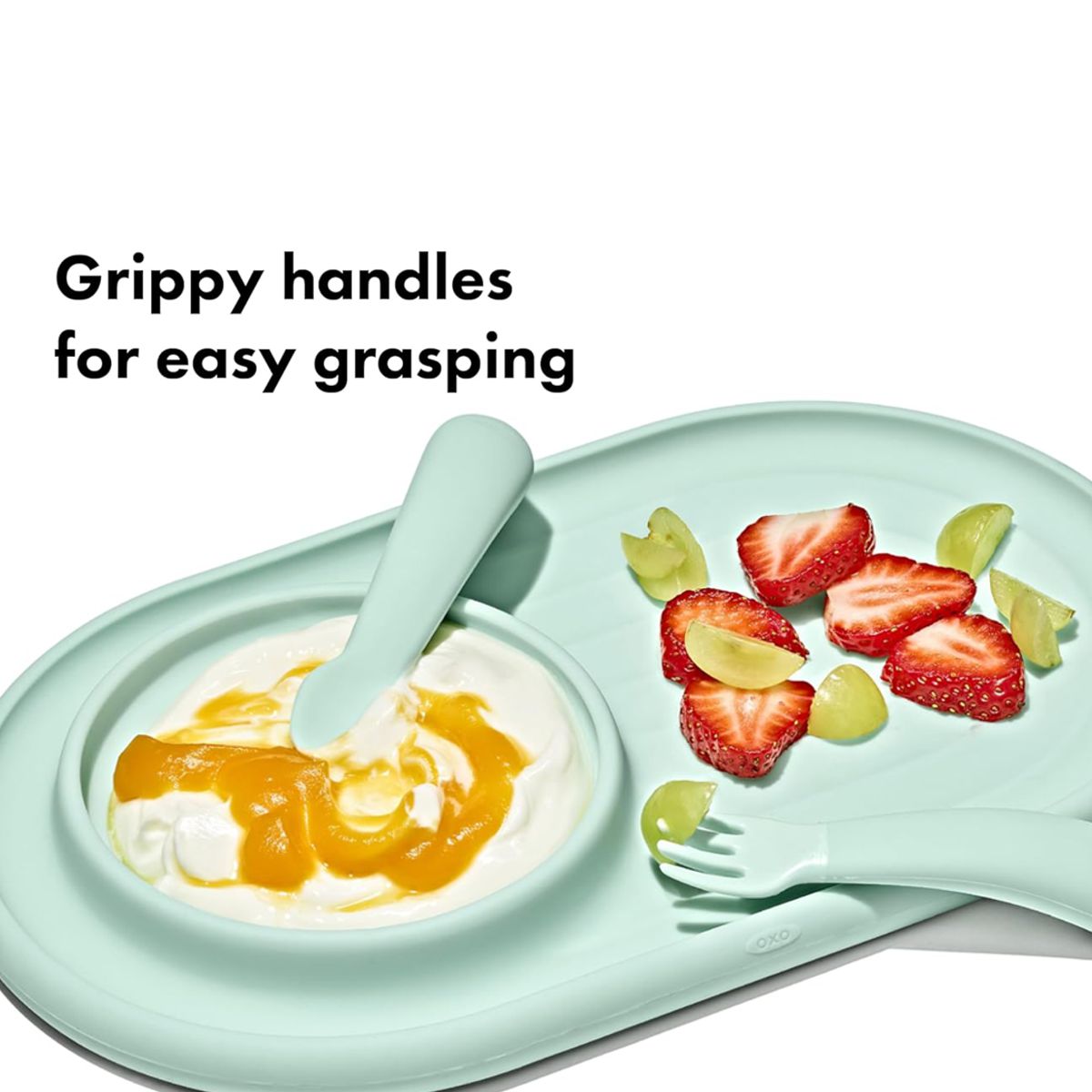 ● Secure Nonslip Grip: Soft silicone handles offer a solid grip and leverage for little diners.