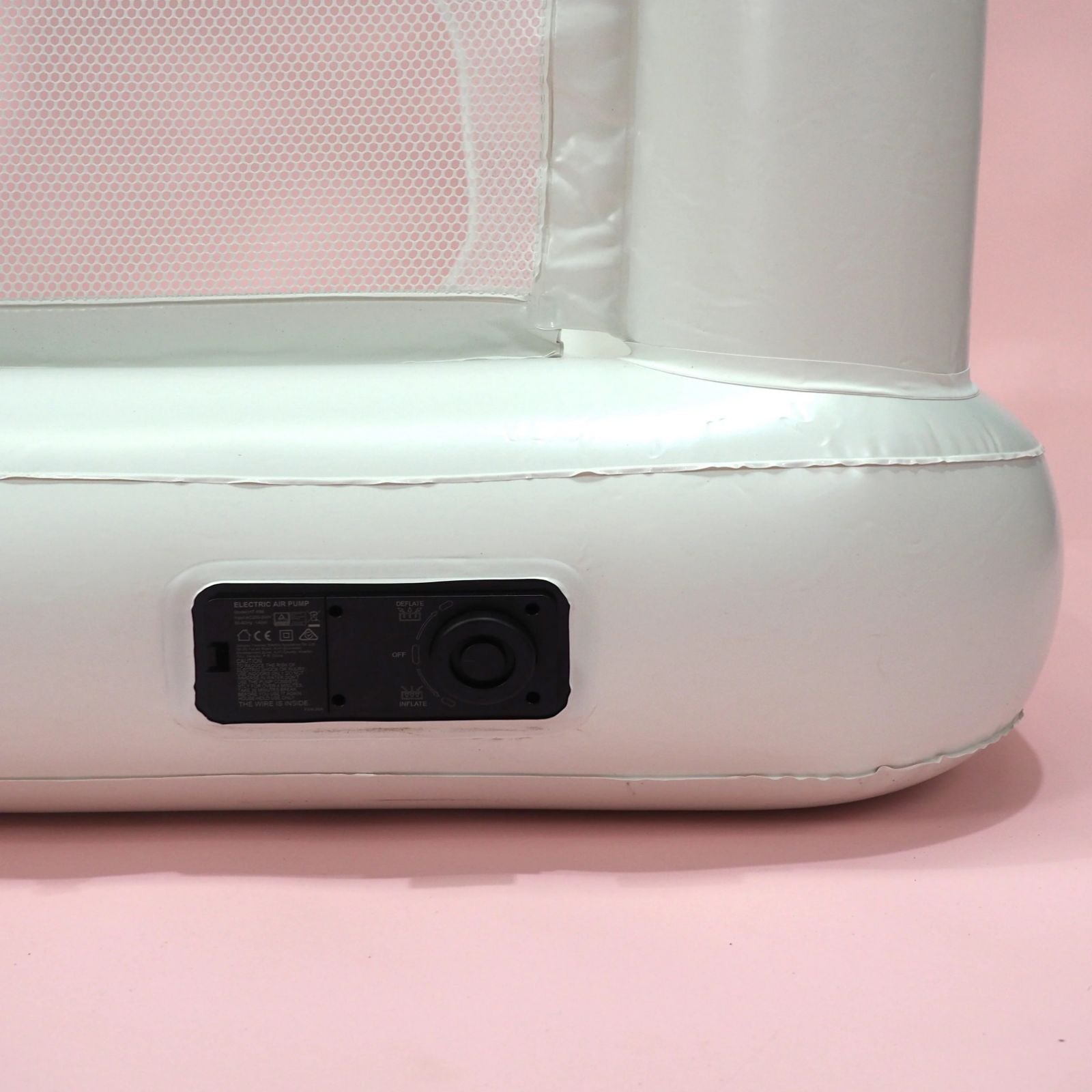 Built-in plug and pump that inflates (and deflates) in under 2 minutes — No continuous and noisy blowers needed