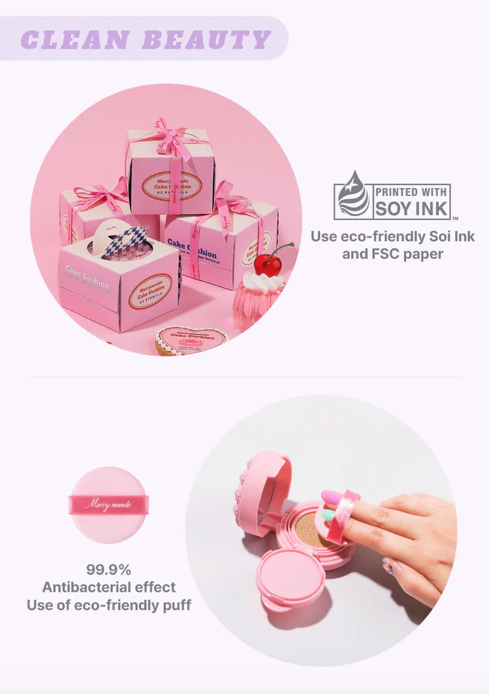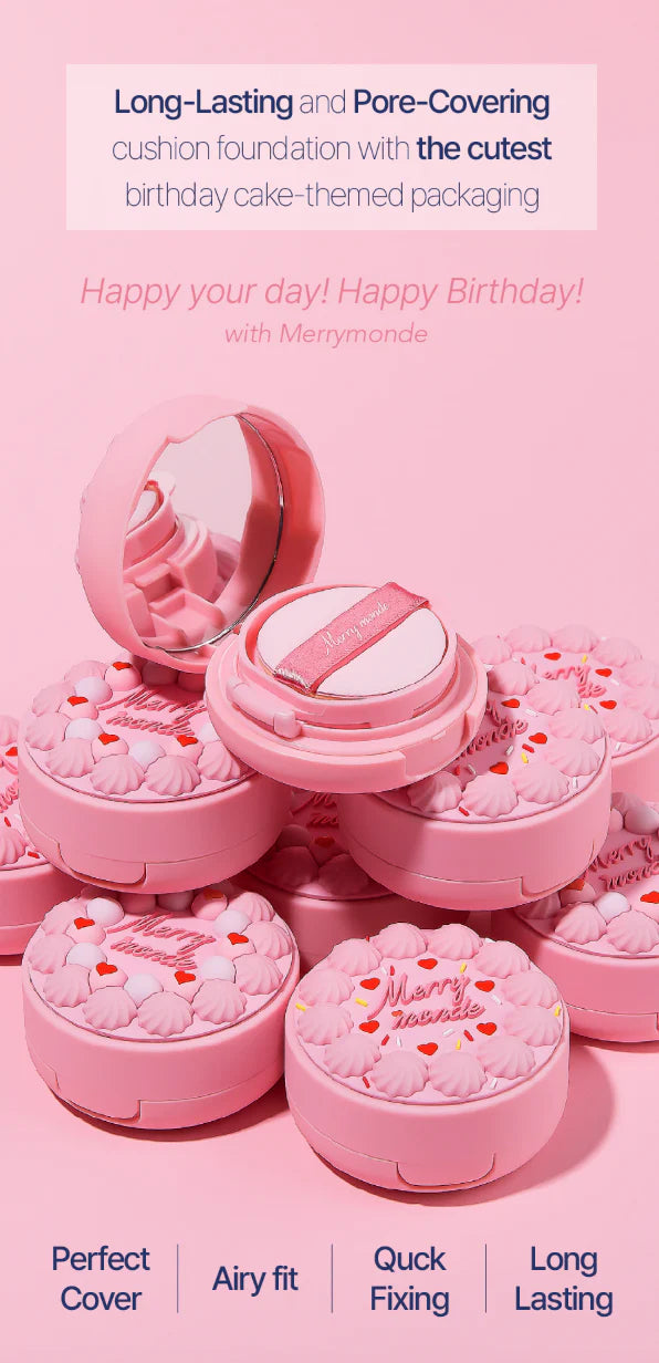 Celebrate flawless skin with the Merry Monde Happy Your Day Cushion, a delightful fusion of skincare and makeup encased in an irresistibly cute birthday cake-themed compact. Designed to provide long-lasting, natural coverage, this cushion foundation is a must-have for those seeking a radiant and hydrated complexion.