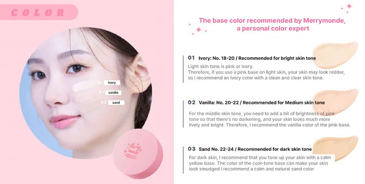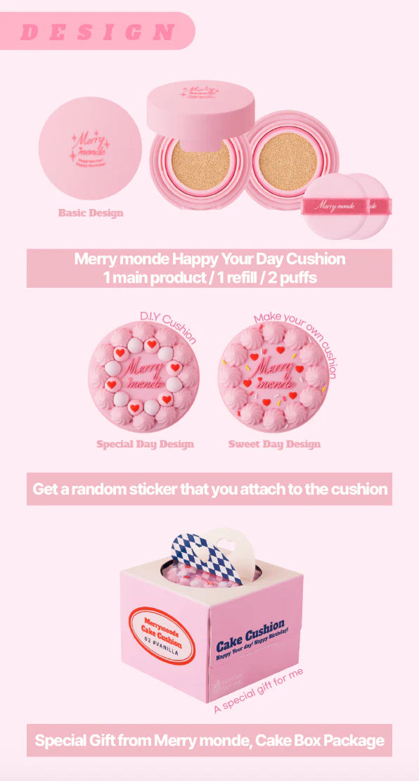 Elevate your makeup routine with the Merry Monde Happy Your Day Cushion, combining effective skincare benefits with a charming design. Whether you're looking to brighten your complexion, protect your skin from UV rays, or simply enjoy a delightful beauty experience, this cushion foundation has you covered.
